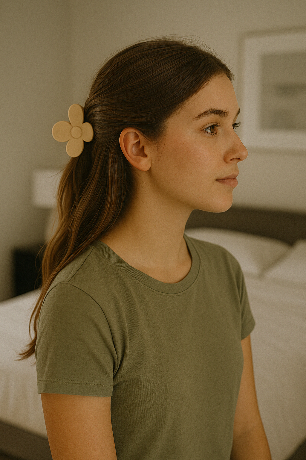 Perfect for days when you want your hair up without committing to a full updo, it works beautifully for running errands, studying, or simply relaxing at home.