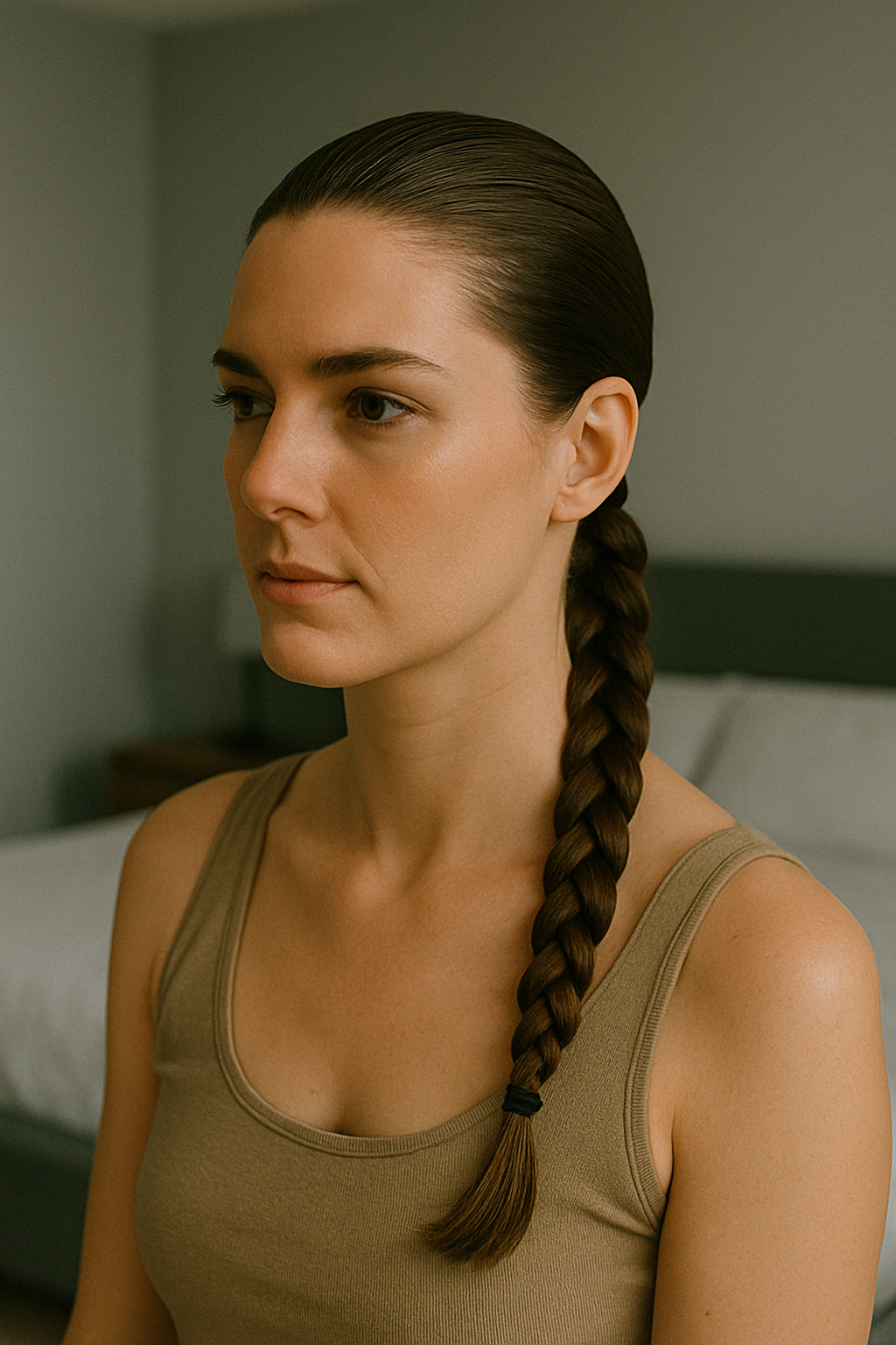 Slicking your hair back before braiding hides greasy roots while creating a sleek, athletic vibe that’s both practical and stylish, making this an ideal choice for active days, workouts, or any moment when you need your hair completely out of the way.