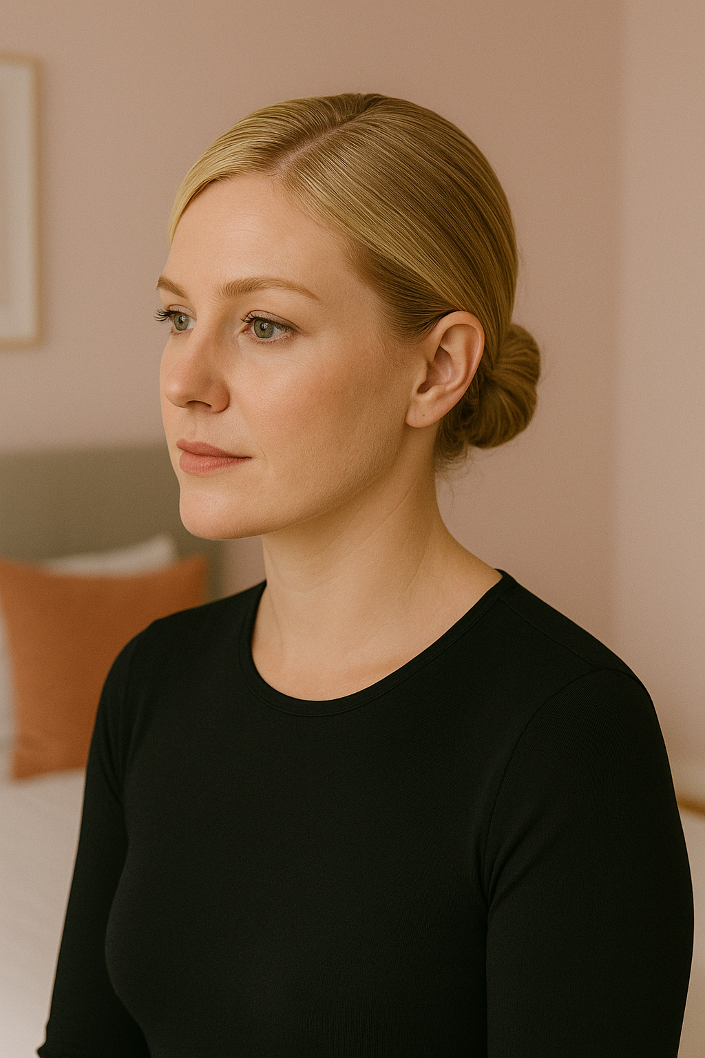 The dramatic side part adds instant sophistication, while the low placement of the bun keeps greasy roots hidden and out of sight, giving you an elegant, refined look that’s perfect for interviews, formal events, or any moment you want to feel your absolute best.