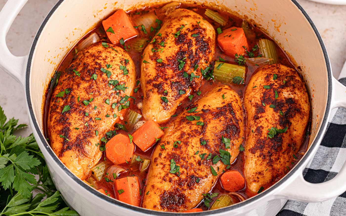 The Dutch oven locks in moisture, keeping the chicken juicy and tender every time.