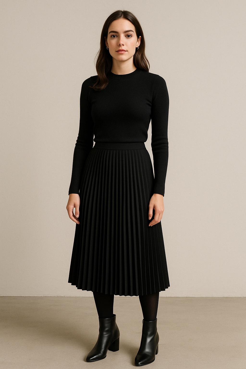 Pleated skirts bring movement and elegance to any outfit, swaying beautifully as you walk. When temperatures dip, pair yours with opaque tights to stay warm without losing the feminine vibe.
