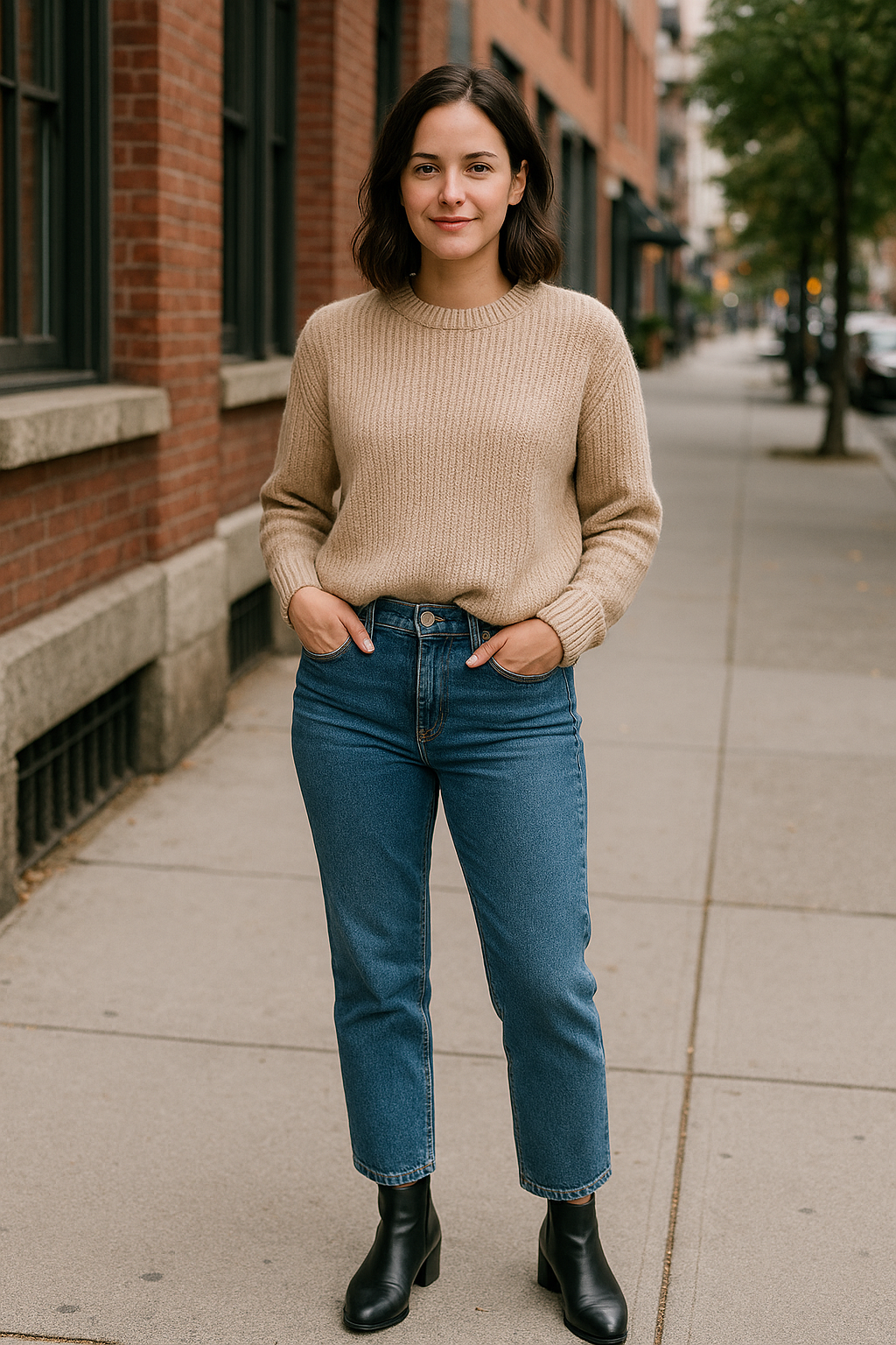 Nothing beats a cozy sweater when the temperature drops. Pair it with straight-leg jeans that hit just above your ankle, and you’ve got an instantly flattering silhouette that never goes out of style.