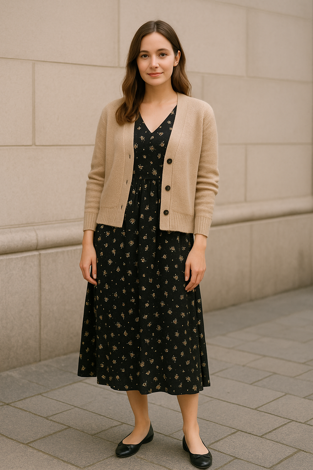 Midi dresses solve the what-to-wear dilemma in one single piece. Add a cardigan when the breeze picks up, and you’ve created layers without any complicated styling decisions.