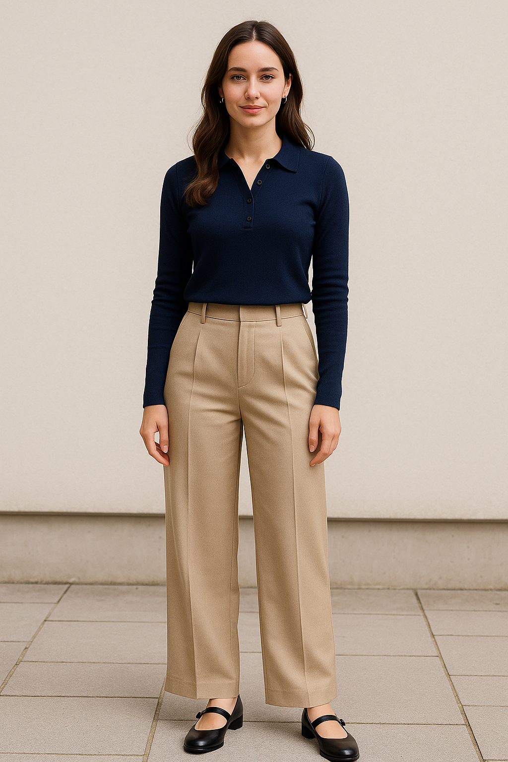 10. Wide-Leg Trousers + Long-Sleeve Polo + Mary Janes