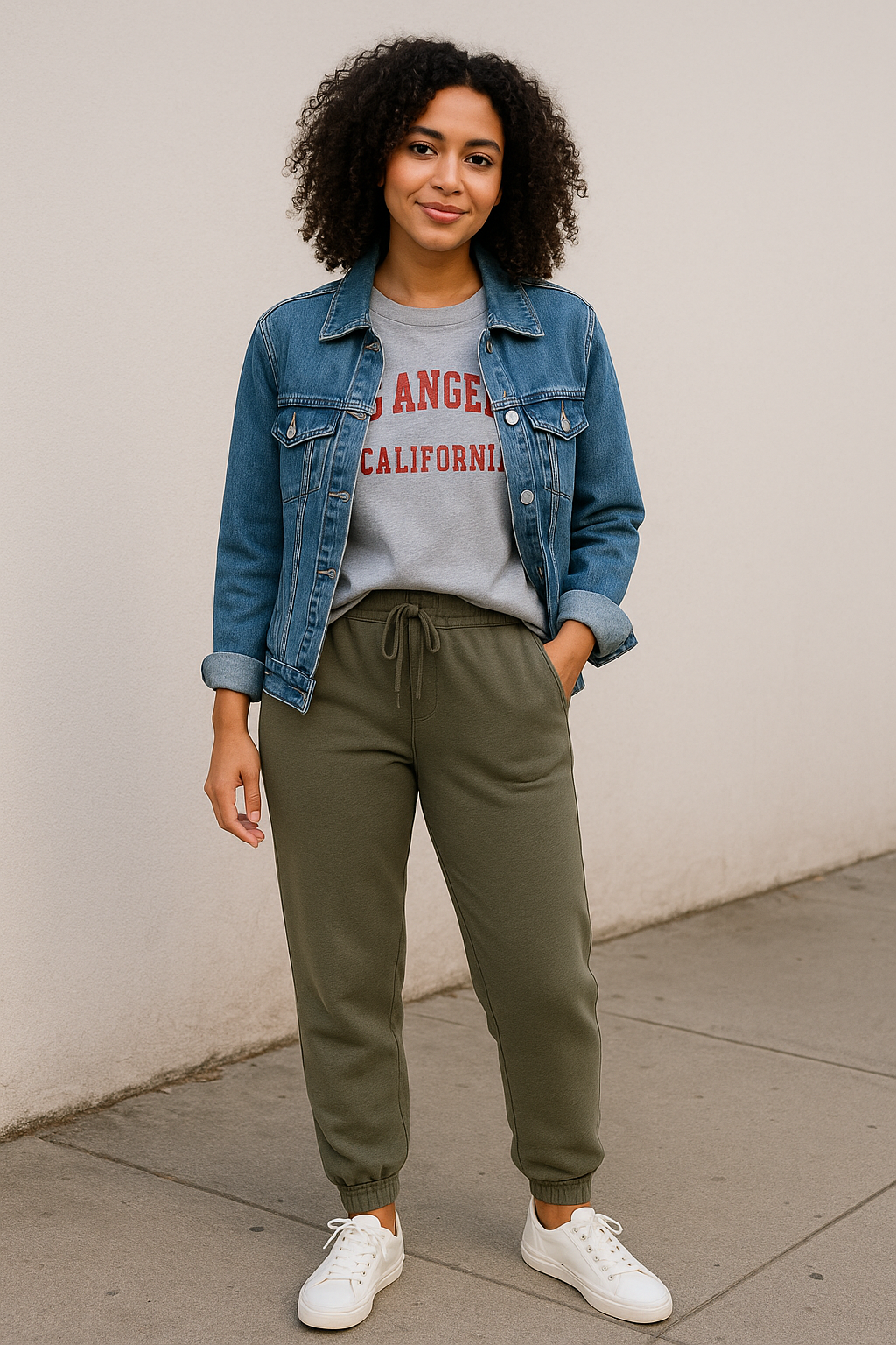 Layer a classic denim jacket over everything for timeless appeal and extra warmth. Sneakers keep the vibe relaxed and active-friendly. This combination is perfect for weekend adventures, travel days, or any time you want to prioritize comfort without sacrificing style. The key is choosing elevated versions of casual pieces.