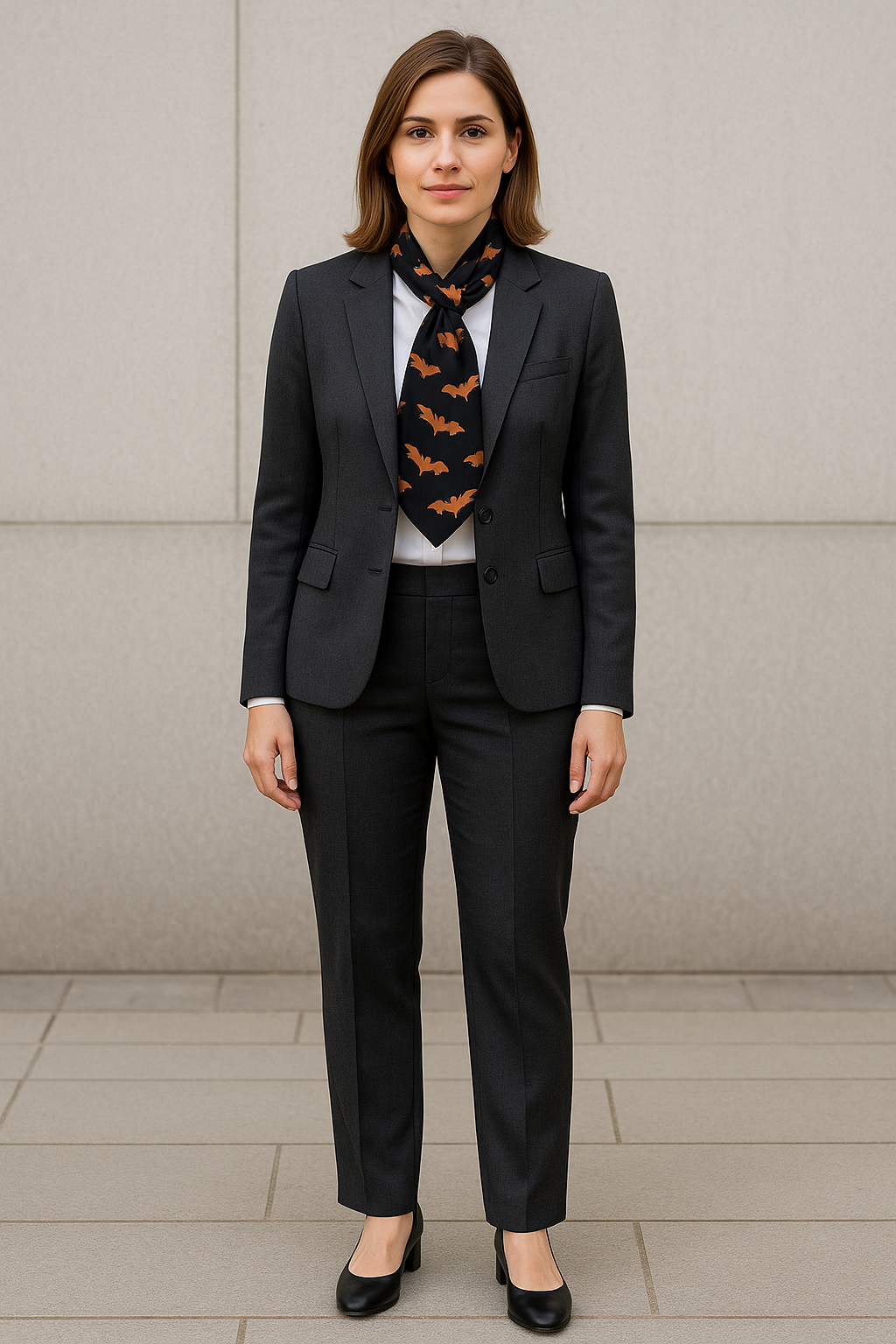 The bat motif tie or scarf becomes your subtle seasonal statement. It shows you have personality and holiday spirit while maintaining complete professionalism.