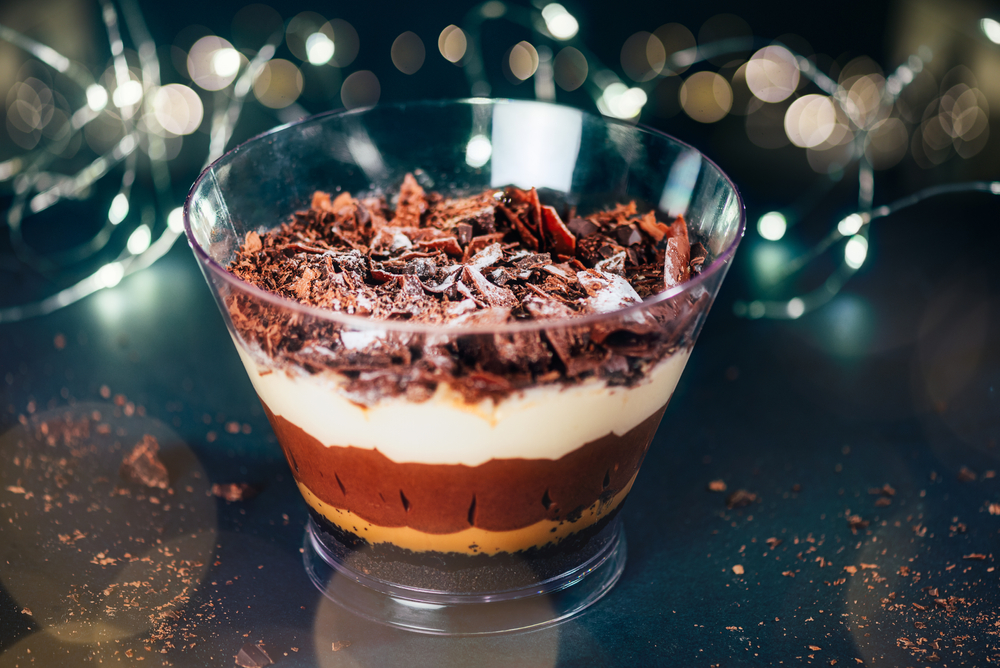Start with chocolate cake cubes, then layer with chocolate pudding and whipped cream.