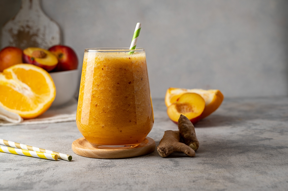 This essential vitamin builds collagen, the protein that keeps skin smooth and prevents wrinkles. Juice two oranges, add half a grapefruit, a squeeze of lemon, a frozen banana for creaminess, and a dash of turmeric for extra anti-inflammatory benefits.