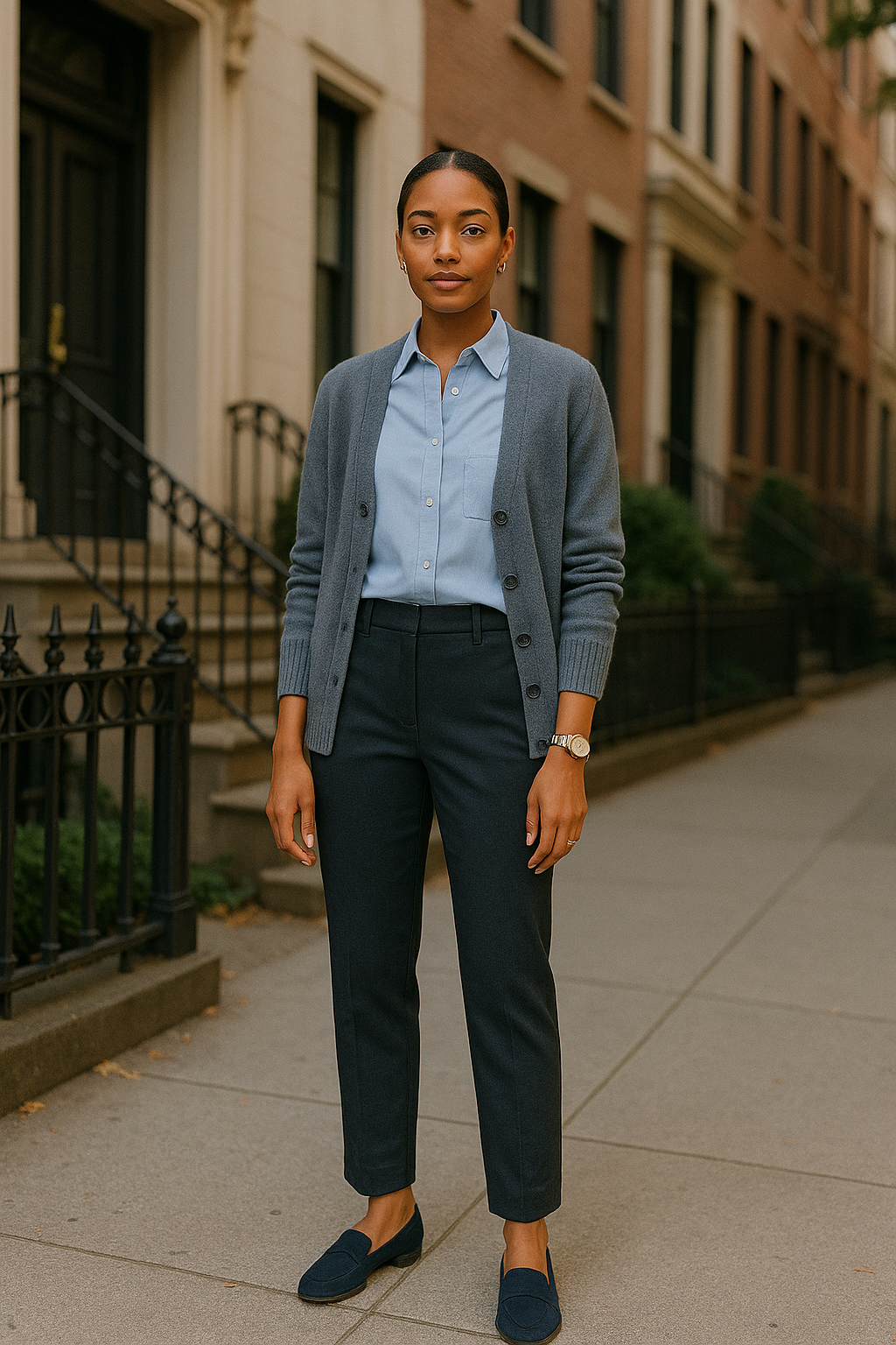 This formula works beautifully for work environments or any situation where you want to project competence and style simultaneously.