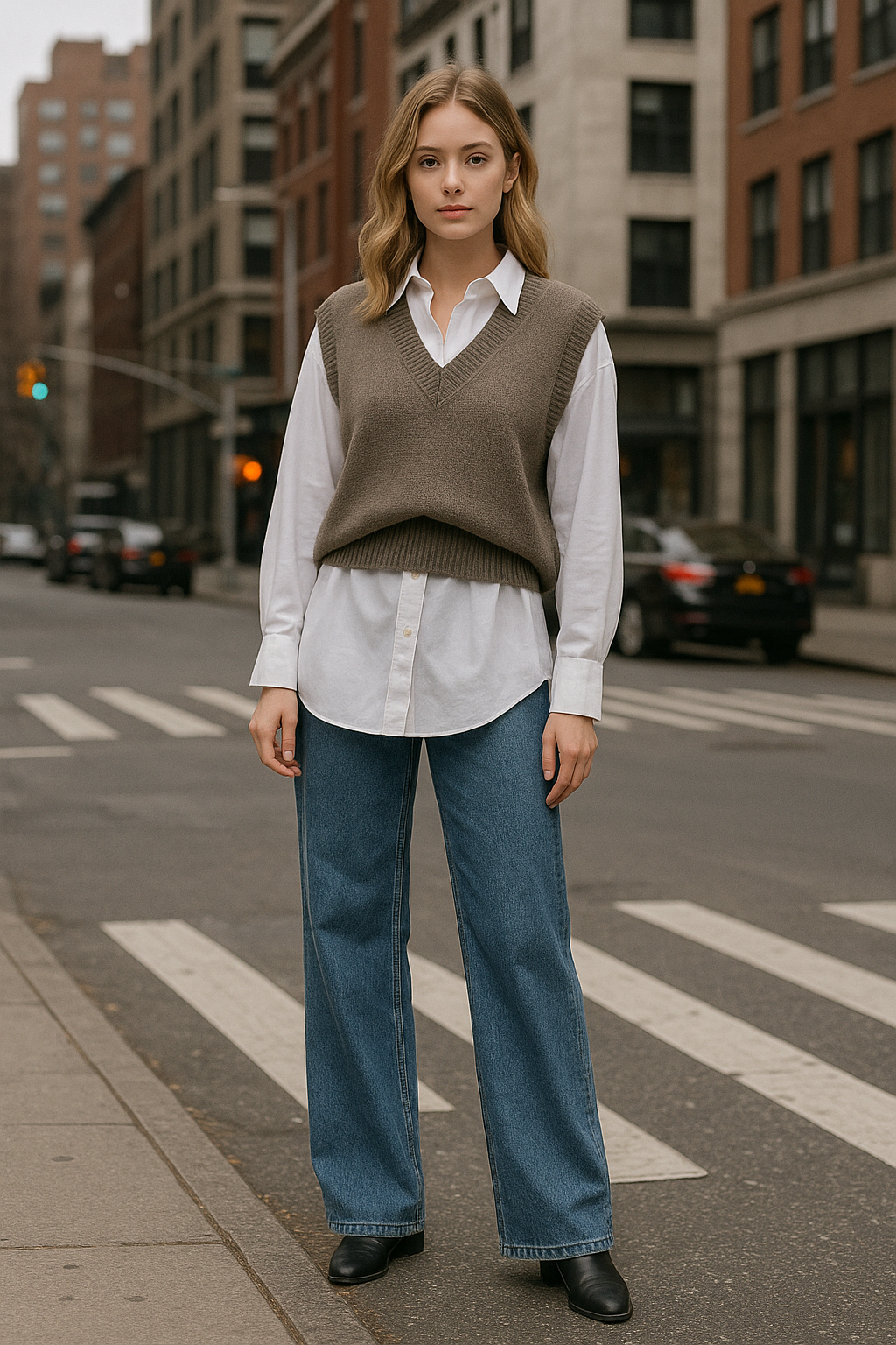 Sweater vests are having a major moment, and pairing one with an oversized shirt creates the perfect preppy-meets-casual look.