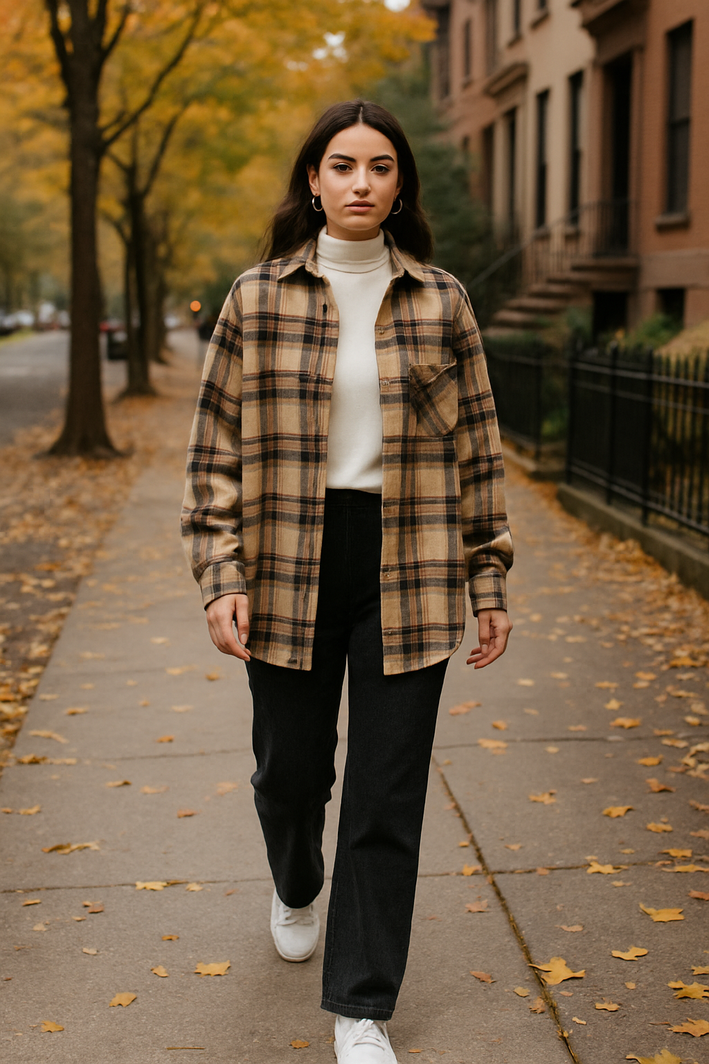 This layering technique works especially well with plaid or flannel oversized shirts that have that classic autumn feel.