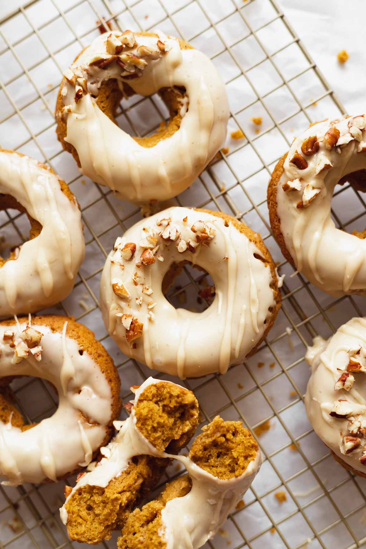Baked instead of fried, these guilt-reduced donuts deliver all the fall flavors you crave in a tender, cake-like treat. Pumpkin puree and warm spices create that signature taste, while the maple glaze adds sweetness with autumn flair.