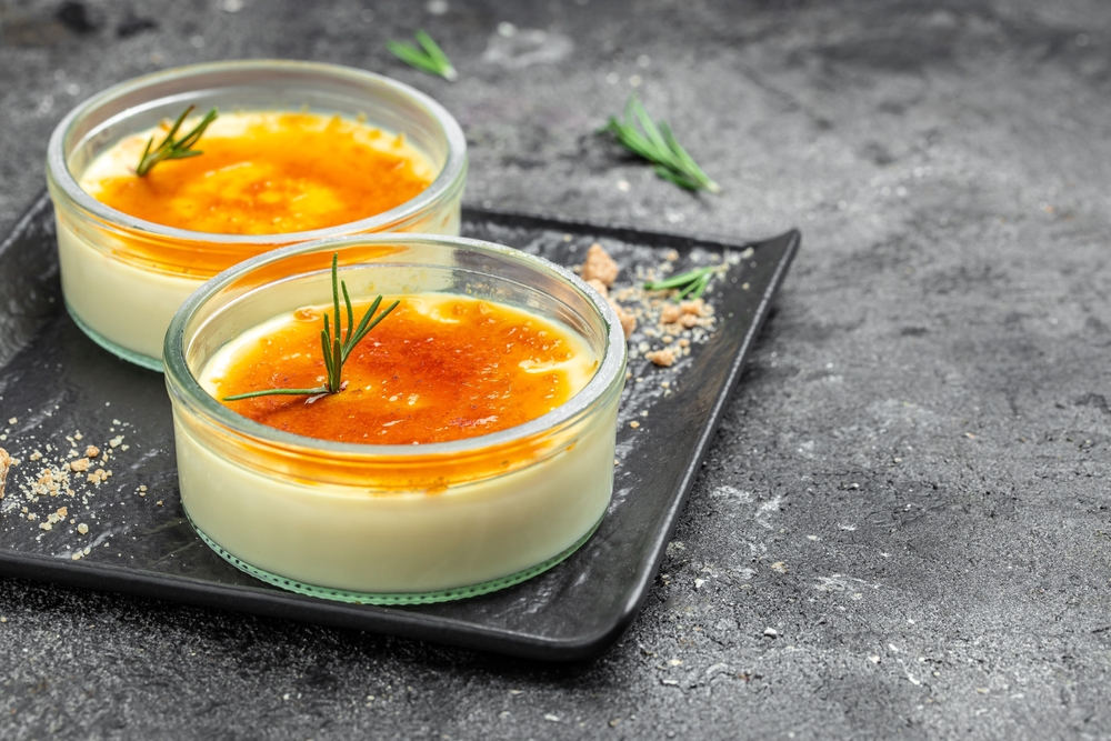 Once chilled, sprinkle a thin layer of sugar on top and use a kitchen torch to melt and caramelize it into glass-like amber. No torch? Your oven’s broiler works too, though watching carefully prevents burning.