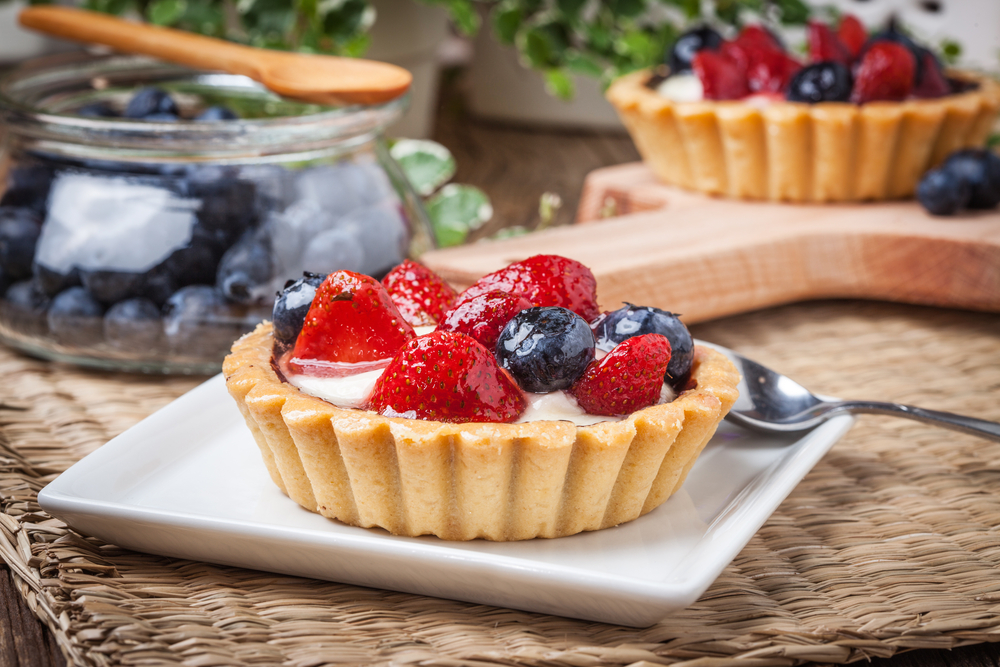 Arranging fresh fruit in concentric circles transforms a simple tart into edible artwork. Start with a pre-made or homemade sweet pastry crust, fill it with vanilla pastry cream, then get creative arranging your fruit in patterns.
