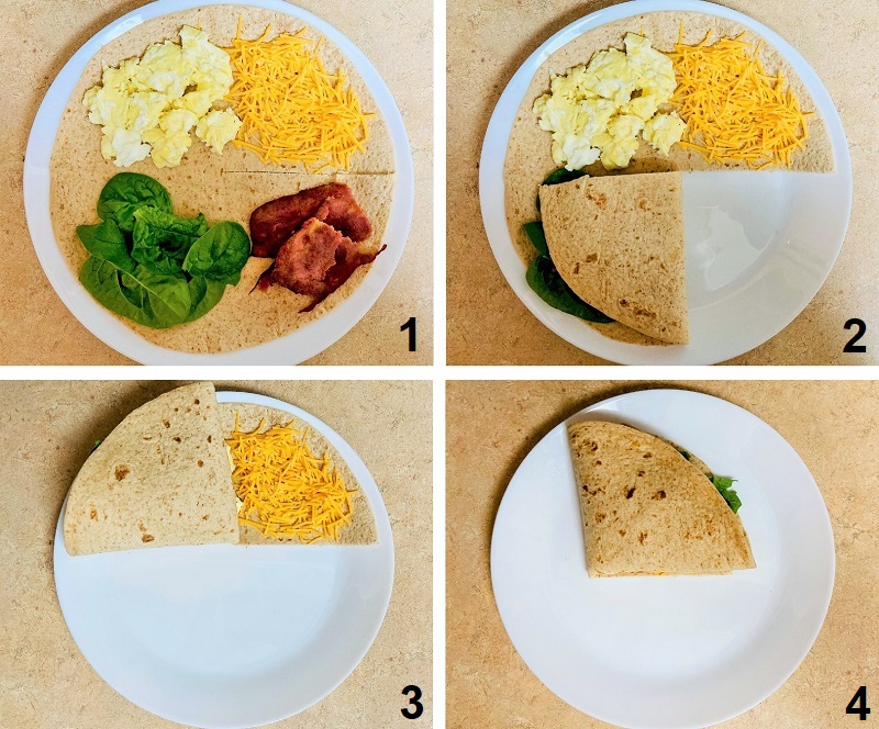 This ingenious folding technique revolutionized lunch preparation by making it possible to create perfectly layered wraps that don’t fall apart. Make a cut from the center to the edge of your tortilla, then add different fillings to each quarter.