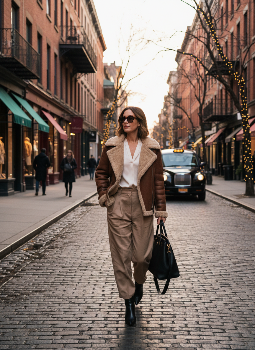 Shearling-lined aviator jackets bring vintage charm with modern functionality.