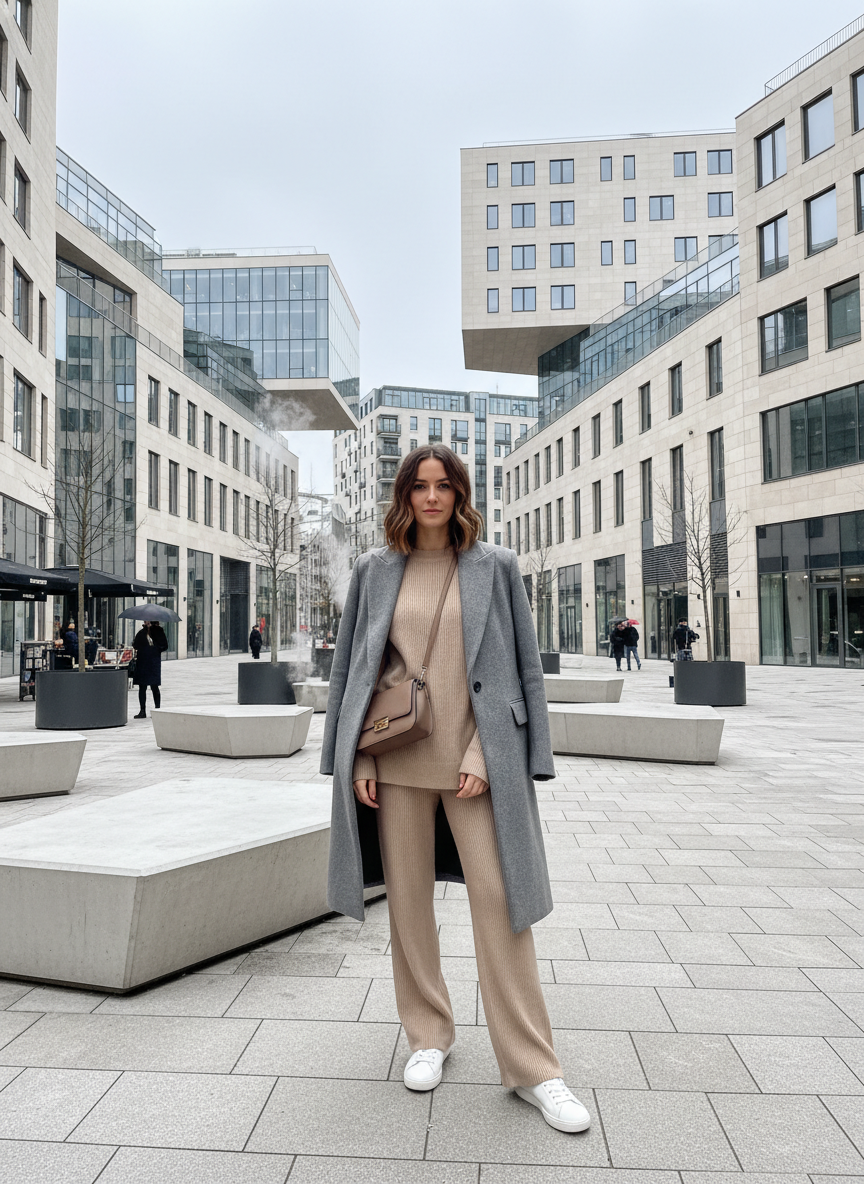Choose knit sets in neutral shades like camel, gray, or cream for maximum versatility.