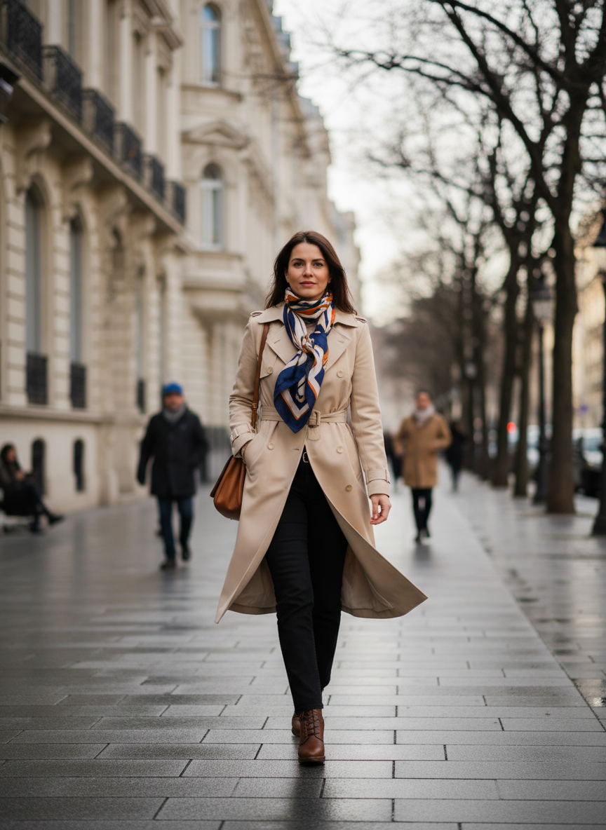 This outfit proves that you do not need a closet overhaul to look current—just one well-chosen accessory.