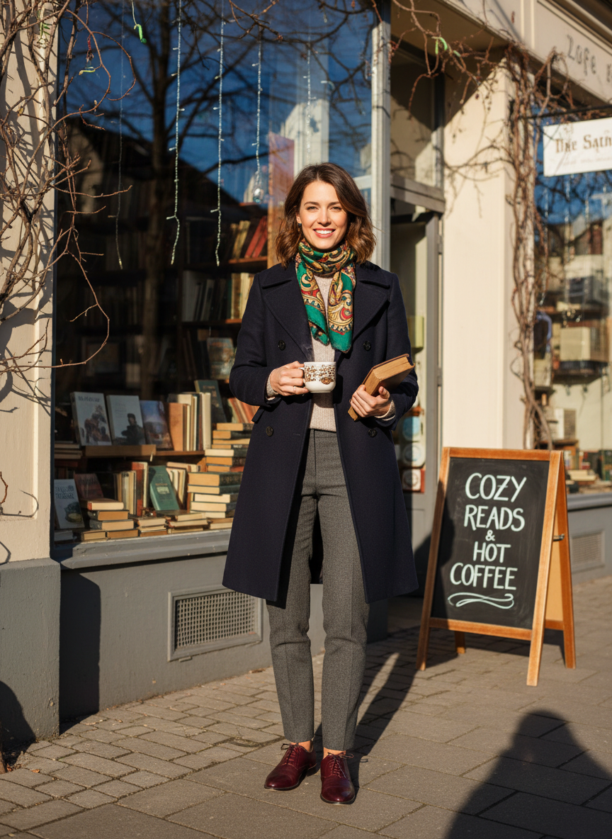 A statement scarf in a vibrant color or striking pattern transforms a classic peacoat into something memorable.