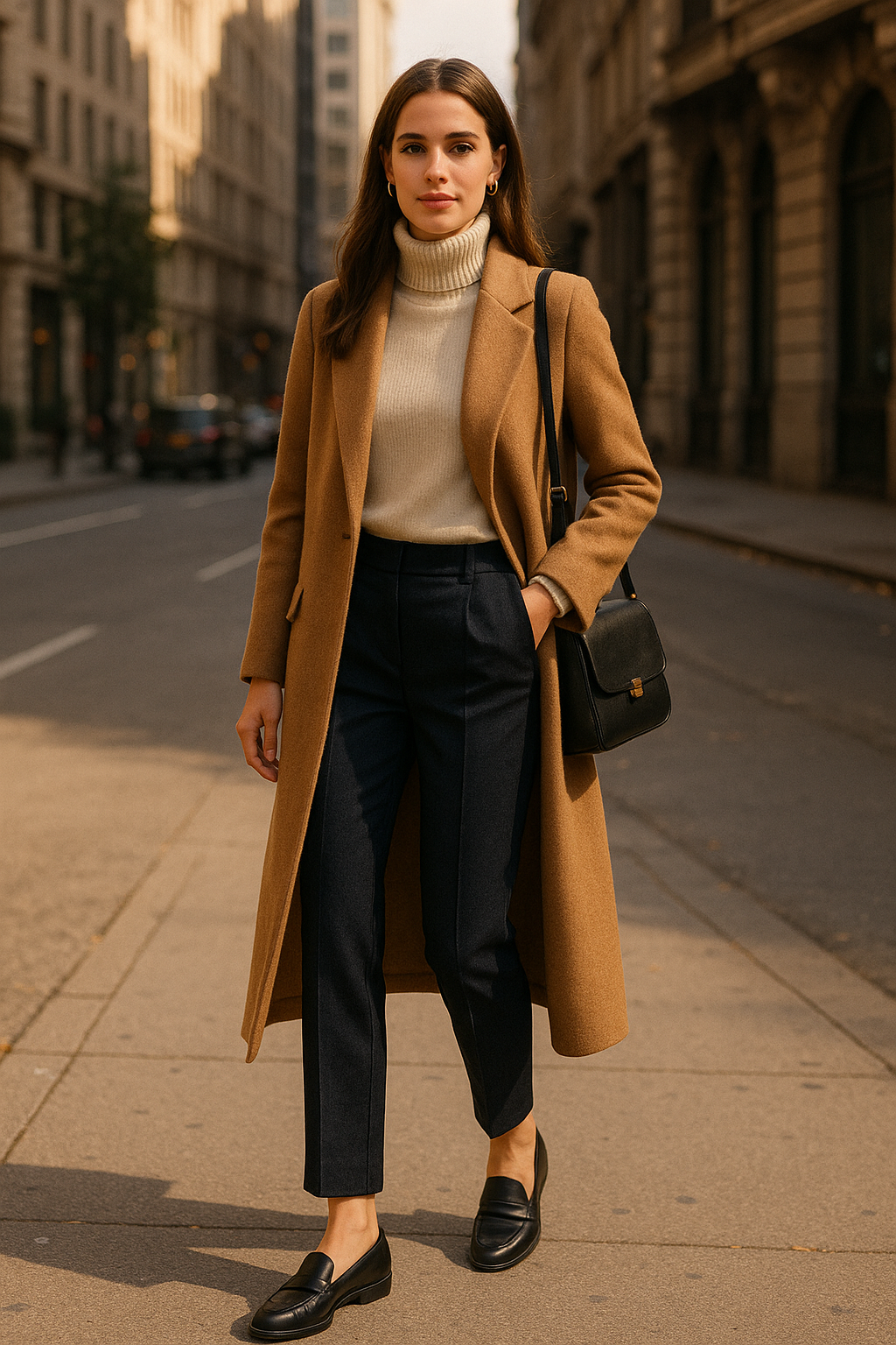 Choose neutral colors like camel, navy, or charcoal for versatility.