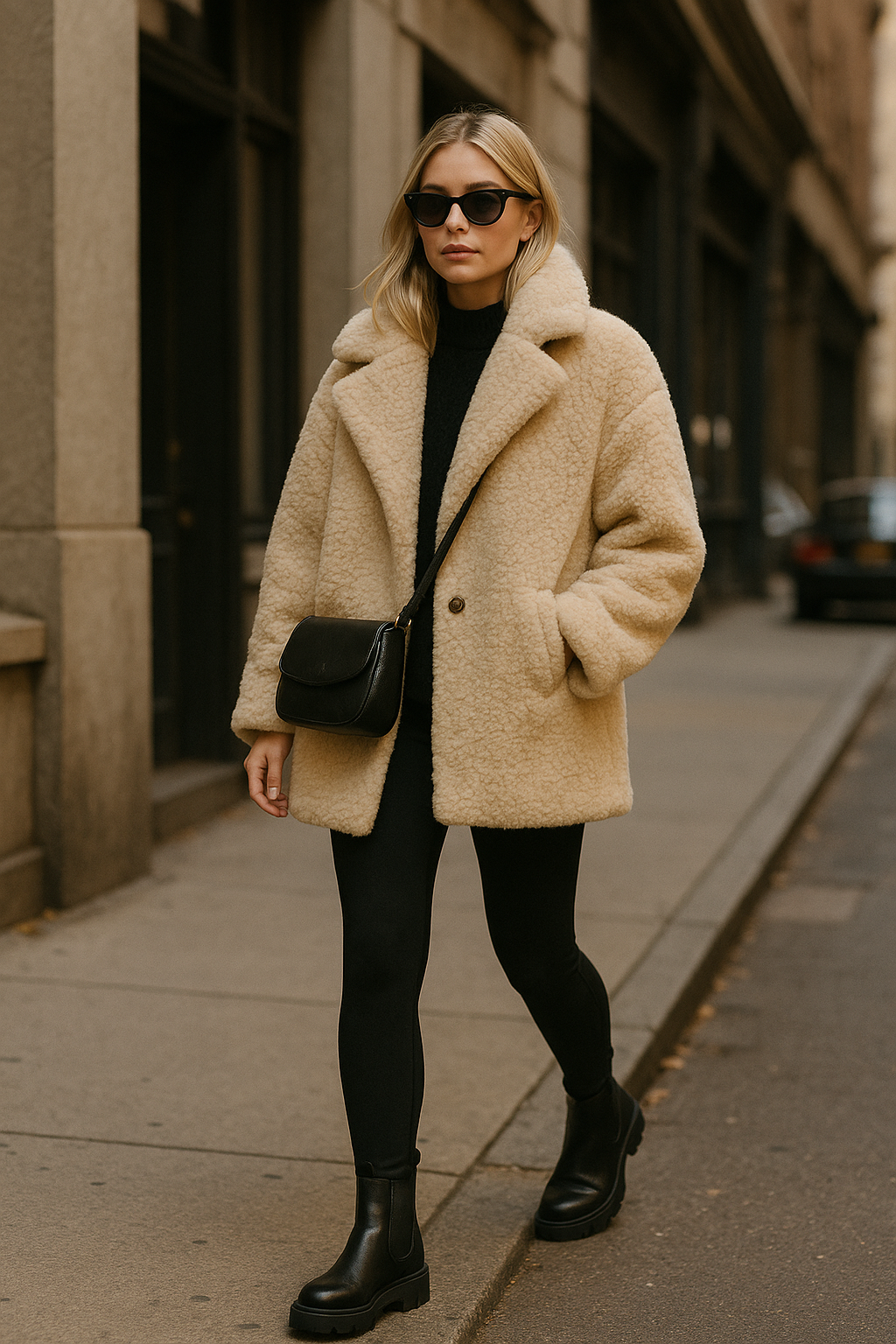 3. Teddy Coat + Leggings + Lug-Sole Boots