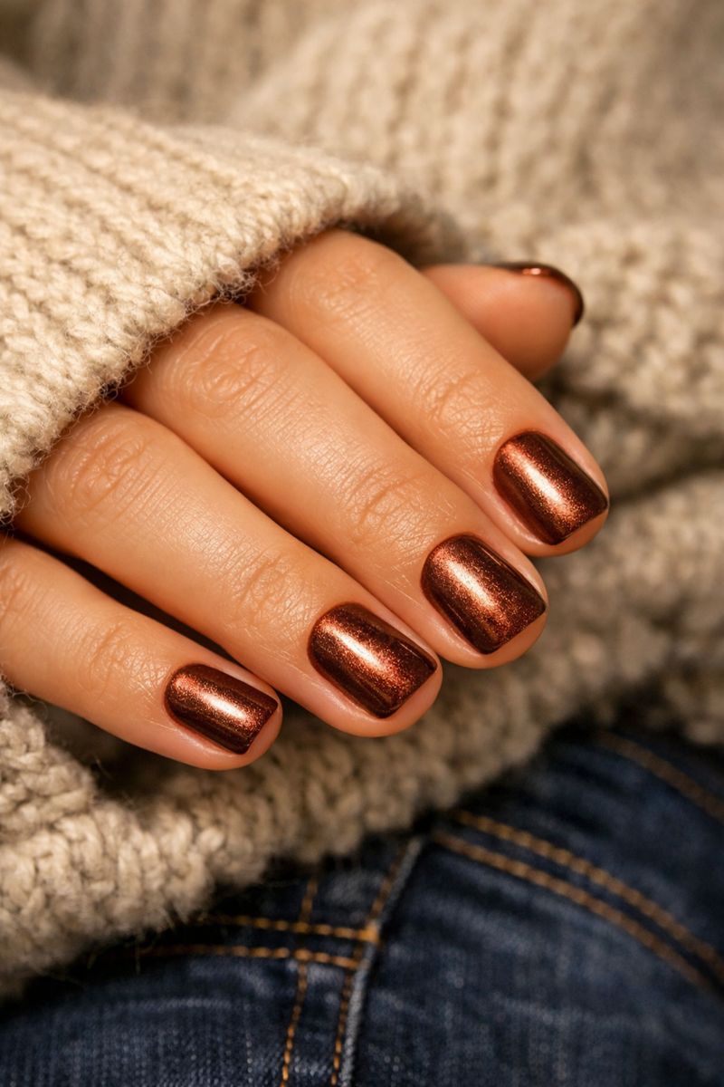 Warm bronze and copper tones bring an earthy sophistication to your fingertips this winter.