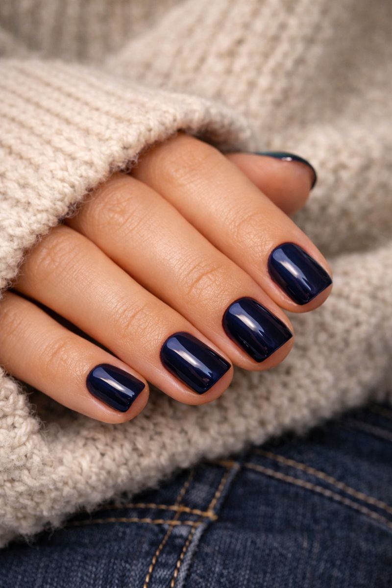 Navy jelly nails complement everything from casual hoodies to formal winter coats, making them incredibly versatile for January’s varied social calendar.