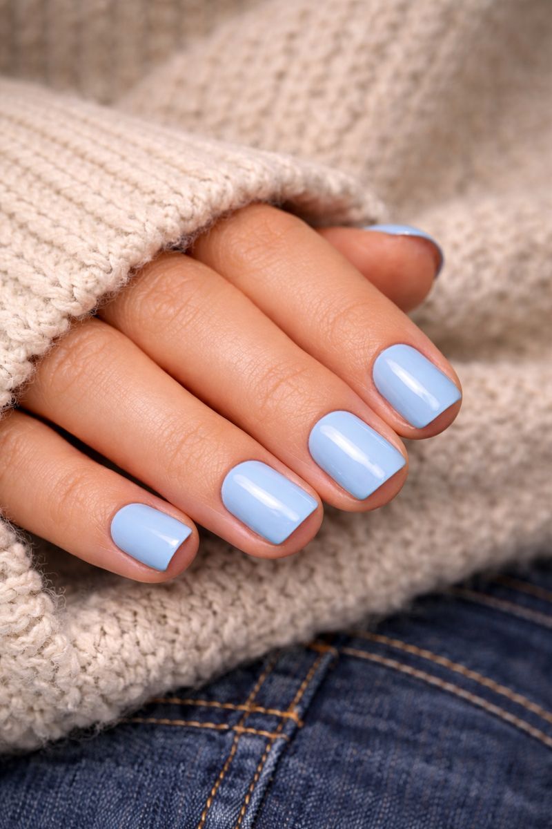Baby blue nails feel youthful and optimistic, like a clear January sky after a snowstorm.