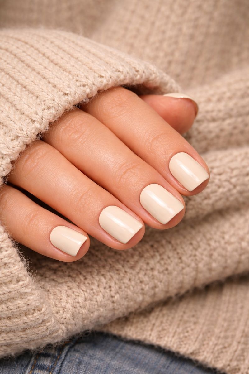 Short vanilla nails elongate your fingers visually while keeping maintenance simple.