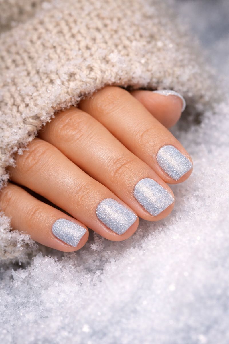 This trend combines a soft, matte texture with subtle shimmer particles that twinkle like frost on a winter morning.