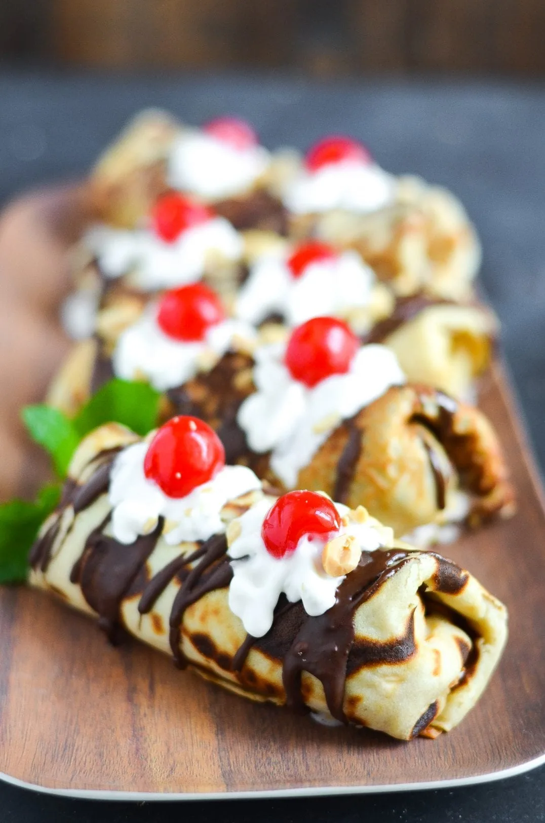 End your meal on a sweet note with dessert burritos that taste like pure indulgence. Spread Nutella, peanut butter, or cream cheese on a flour tortilla, add sliced bananas or strawberries, then roll it up tightly. You can eat them cold or warm them briefly in a skillet.