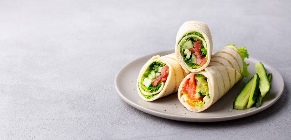 Packed lunches get exciting when you roll up your favorite ingredients in a soft flour tortilla. Spread cream cheese or hummus as a base, then layer deli meats, cheese, lettuce, tomatoes, and cucumbers. Roll tightly and slice into pinwheel pieces for an attractive presentation.
