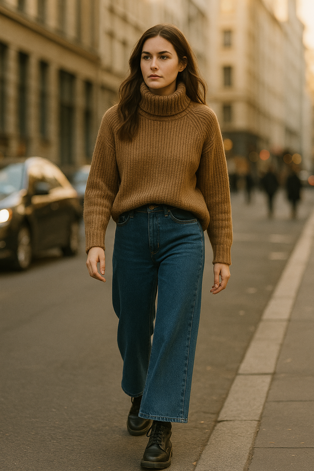Pair them with chunky knit sweaters and combat boots for a balanced look that feels both relaxed and put-together.