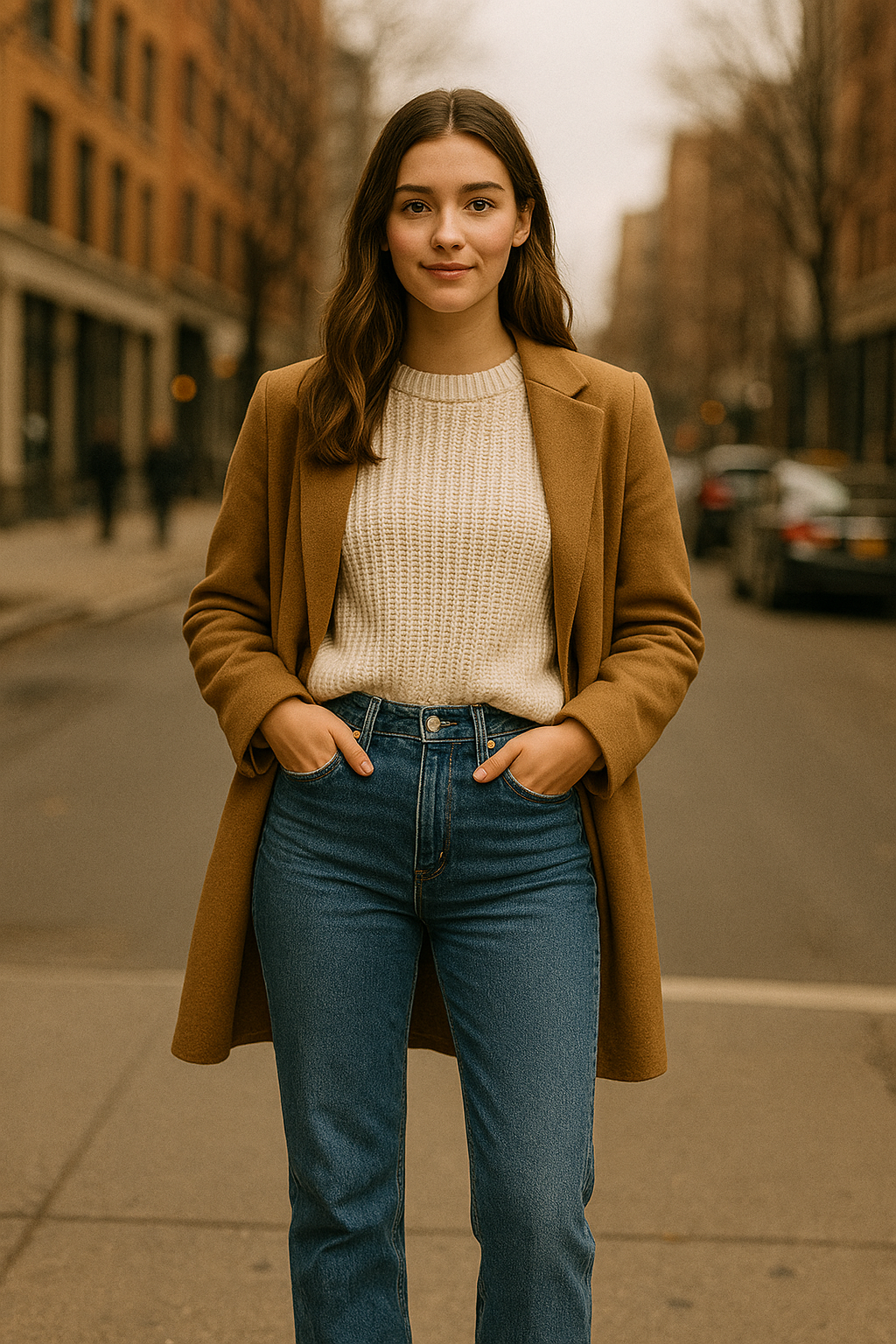 During winter, layering denim pieces provides extra warmth while maintaining that cool, collected aesthetic.