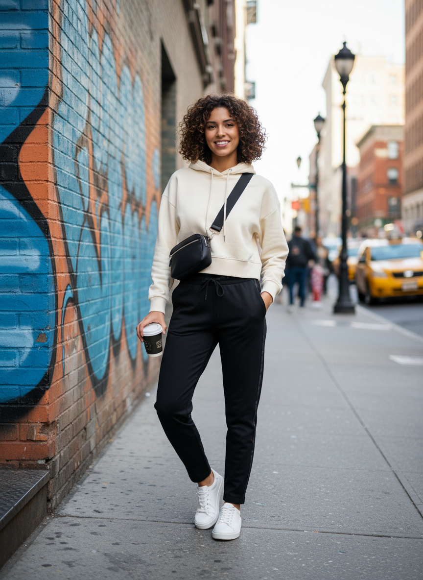 Think fitted joggers paired with a cropped hoodie or a stylish bomber jacket.