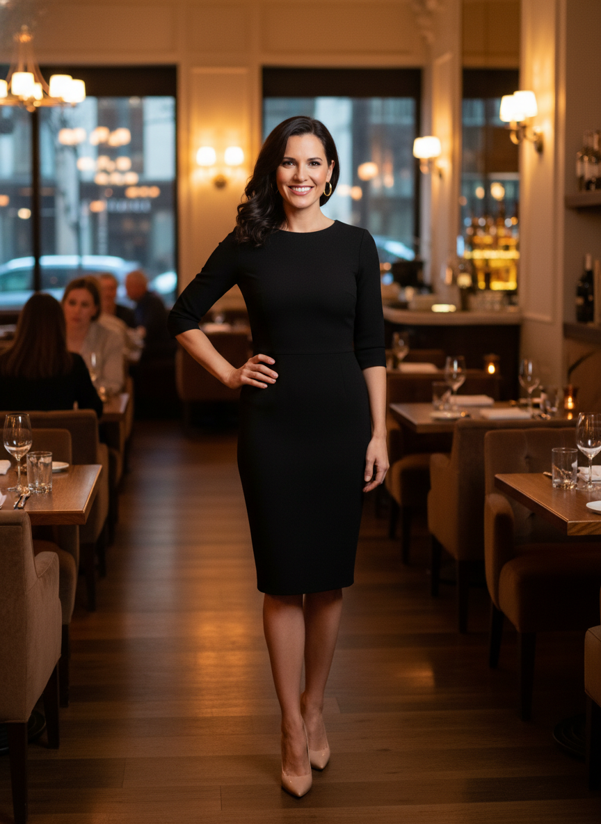 Nude or black heels elongate the look, while simple gold or silver jewelry keeps things elegant.