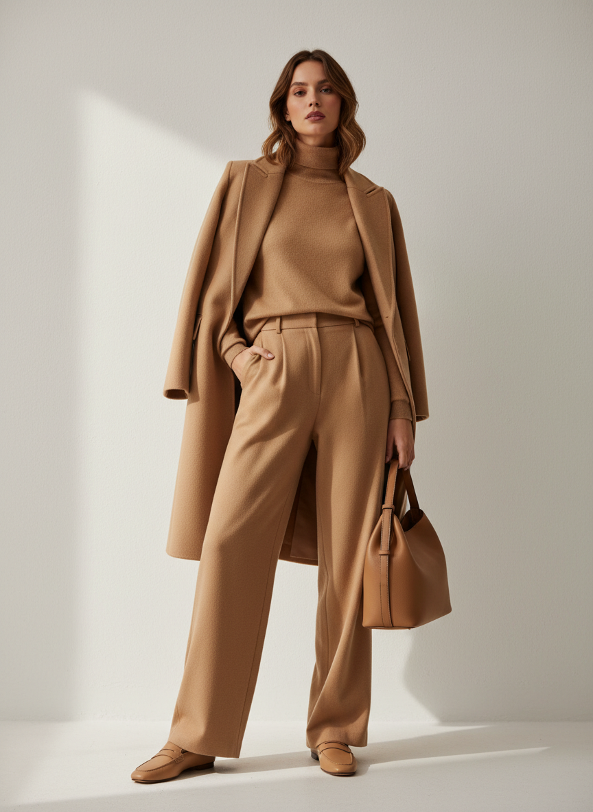 Monochromatic outfits create a long, streamlined silhouette that looks intentional and sophisticated.