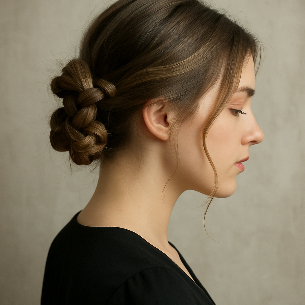 This unconventional technique creates interesting dimension and movement that stands out from typical updos. It’s perfect for those who struggle with braiding but still want something more creative than a basic bun—plus, it’s a guaranteed conversation starter at any event you attend.
