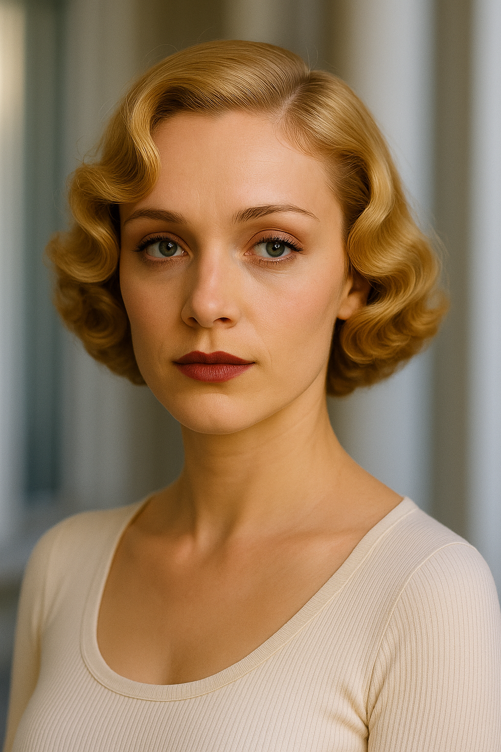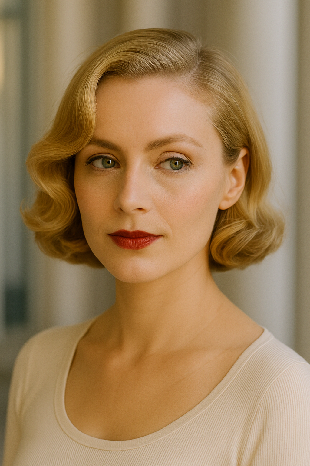Unlike harsher styles of the era, her bob featured gentle, flowing waves that moved gracefully with every turn of her head.