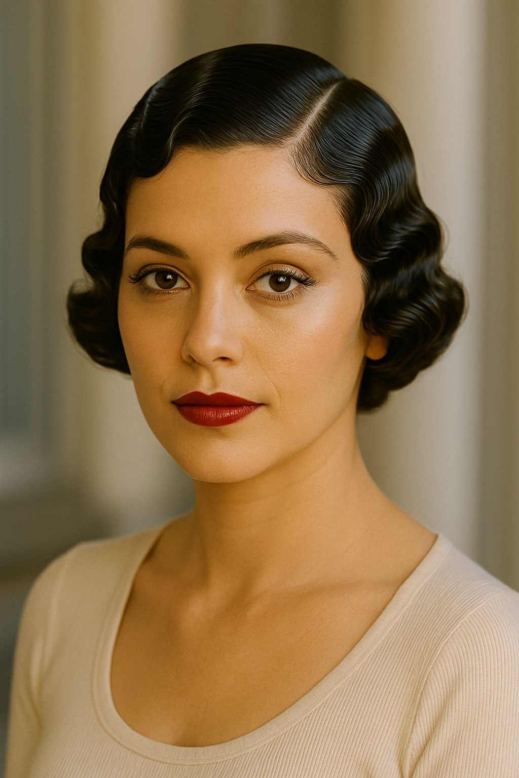 This highly sculptural style featured waves literally molded into the hair with fingers and combs, creating a pattern that looked almost painted on.