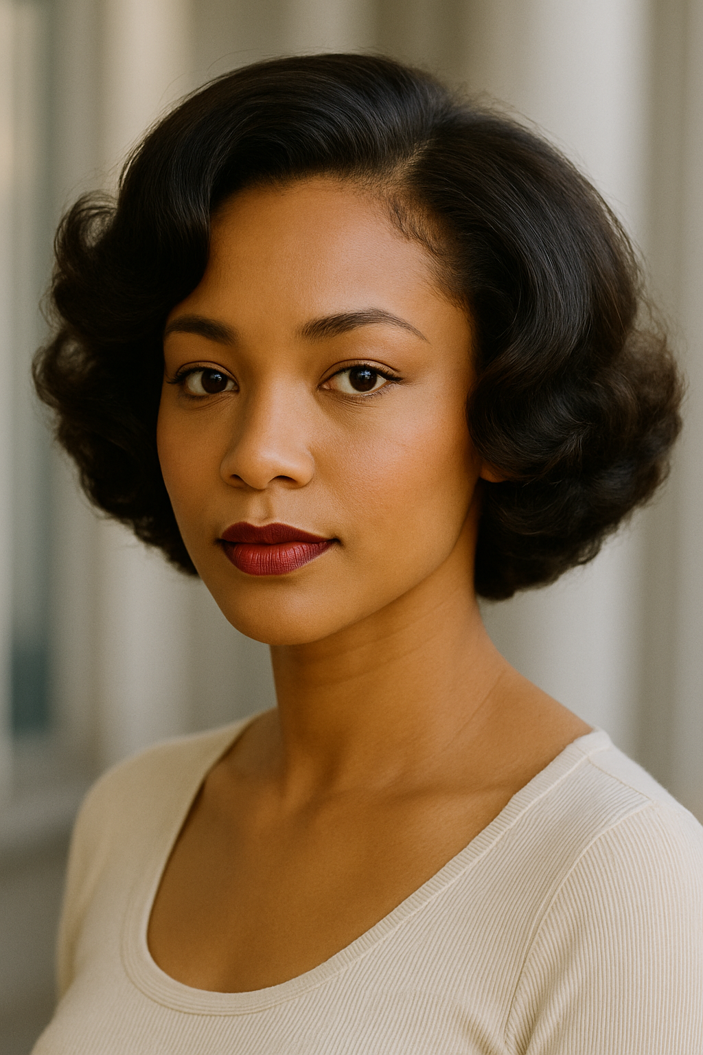 The tucked-under bob remains one of the most wearable vintage styles because it looks polished without appearing overdone.