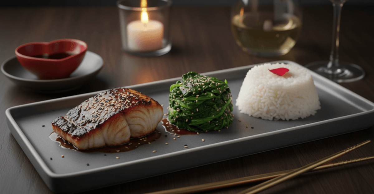 6. Miso-Glazed Black Cod with Sesame Spinach and Jasmine Rice