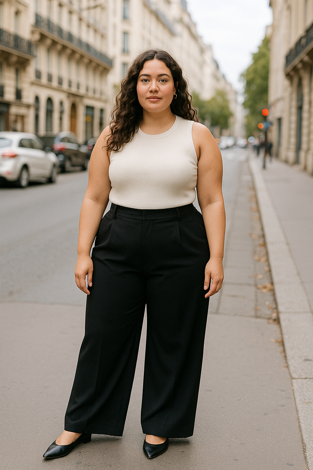 3. High-Waist Wide-Leg Trousers Plus Fitted Top