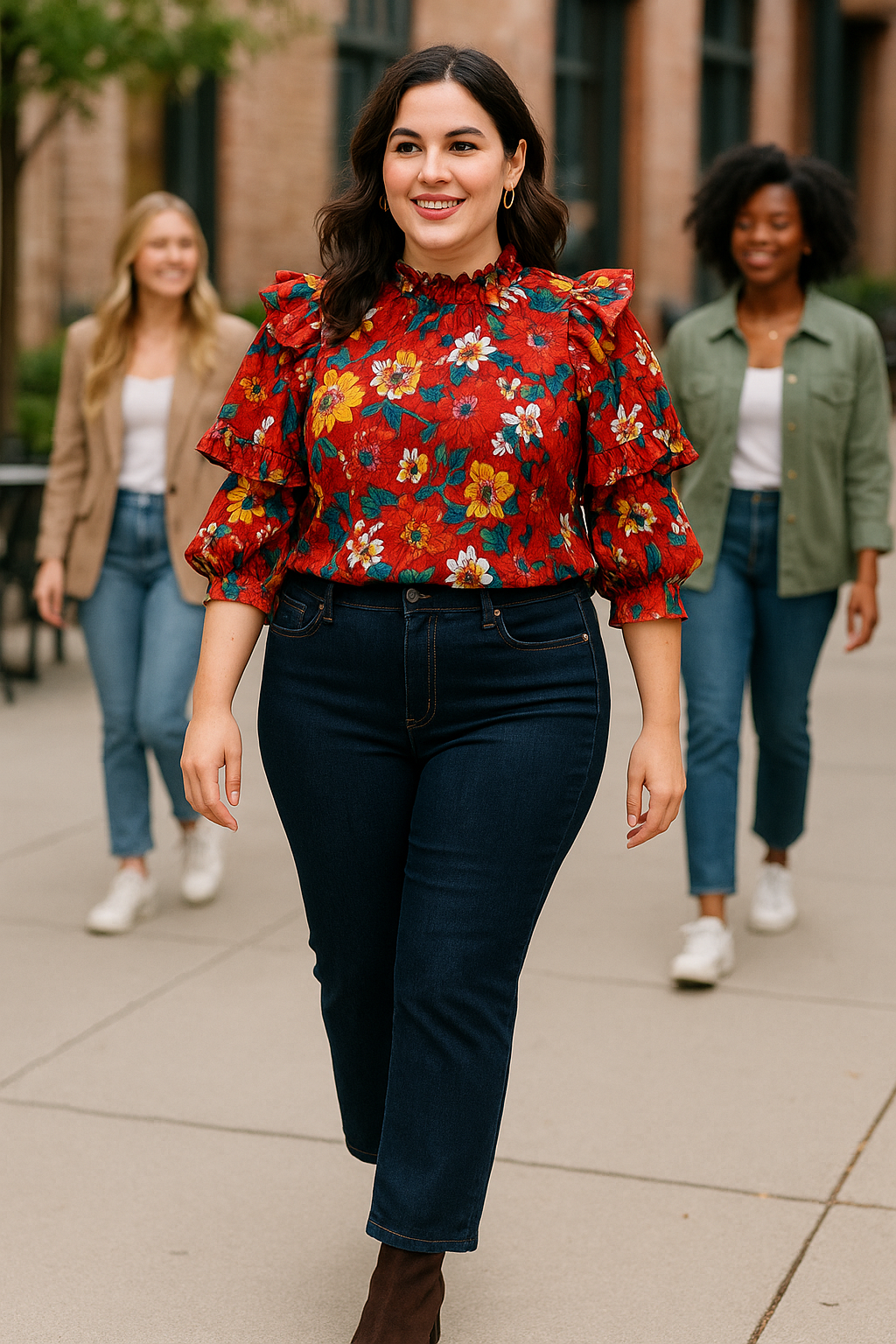 This combination bridges the gap between casual and dressy, making it perfect for transitional occasions. Add ankle boots for daytime or strappy heels for evening, and you have a versatile outfit that feels romantic, modern, and effortlessly flattering on midsize frames.