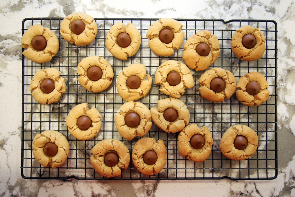 The moment they come out of the oven, she quickly presses a chocolate kiss on top before they cool.