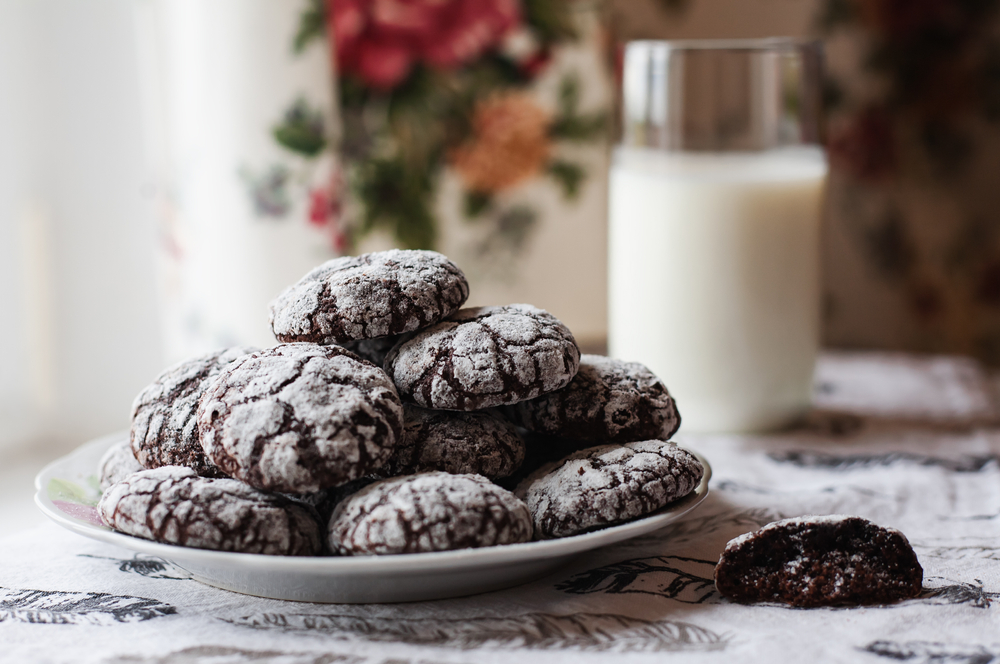 These fudgy chocolate cookies get rolled in powdered sugar before baking, creating a dramatic crackled appearance.