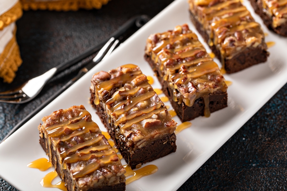 After baking, the bars have all the delicious flavor of traditional pecan pie but in a neat, portable square.