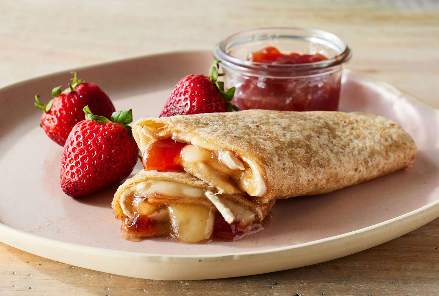 This wrap combines creamy brie cheese with sweet jam, all tucked inside a soft tortilla for an effortless meal.