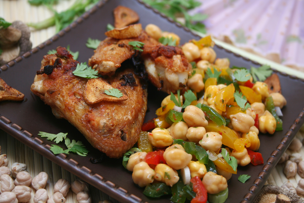 Toss drained chickpeas with buffalo sauce, then pile them over crisp lettuce with cooling ranch or blue cheese dressing.