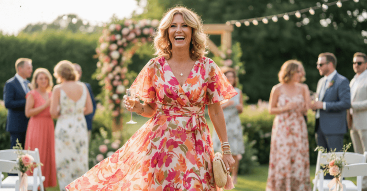A floral chiffon wedding-guest dress is one of the most joyful, celebratory choices a woman over 50 can make when attending someone else’s big day.